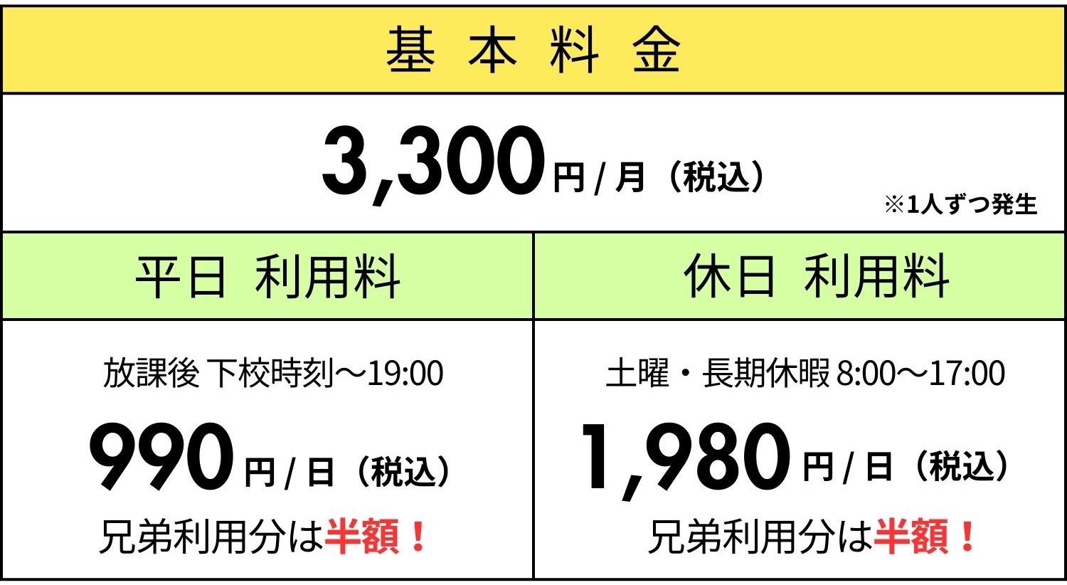 ※兄弟で利用の場合、お一人ずつに発生します。