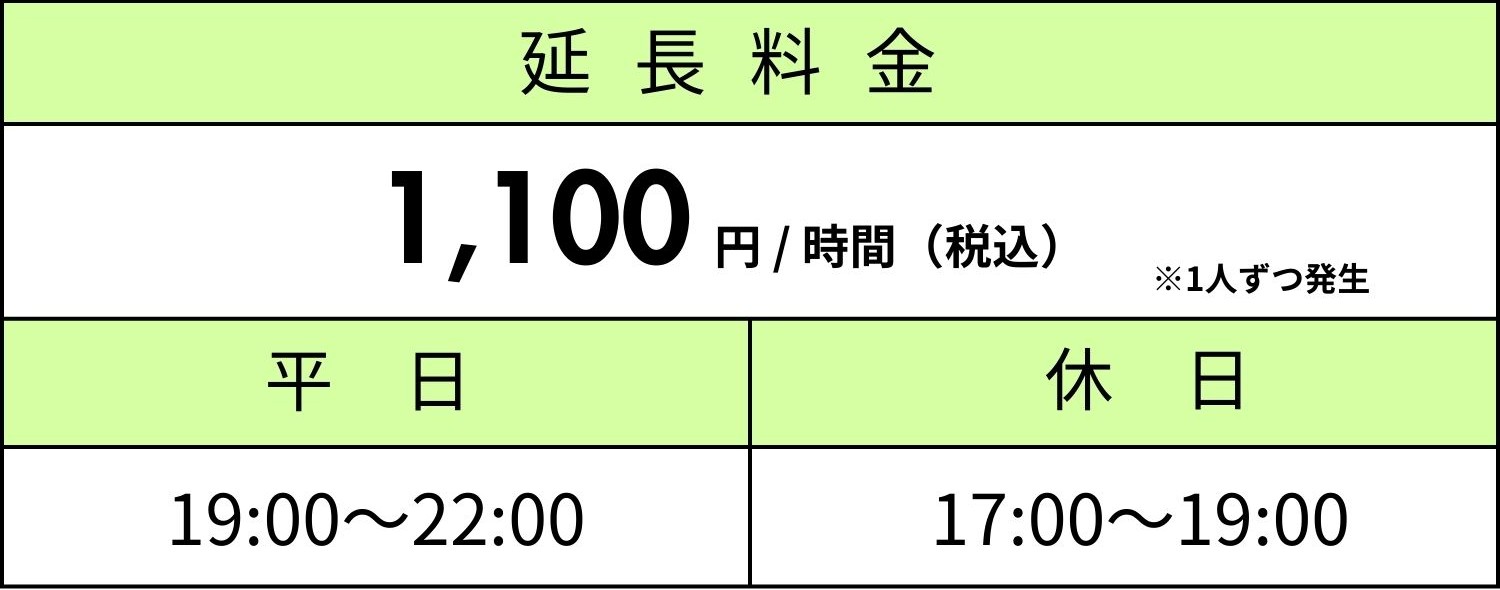 ※ 開室前の延長は前日17時までにご連絡をお願いしております。